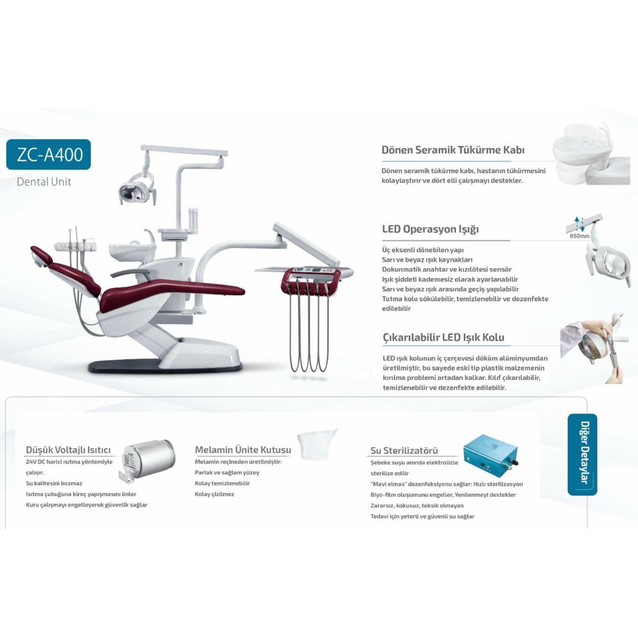 Join Champ ZC-A400, diş hekimlerinin ve hastaların konforu düşünülerek tasarlanmıştır.
