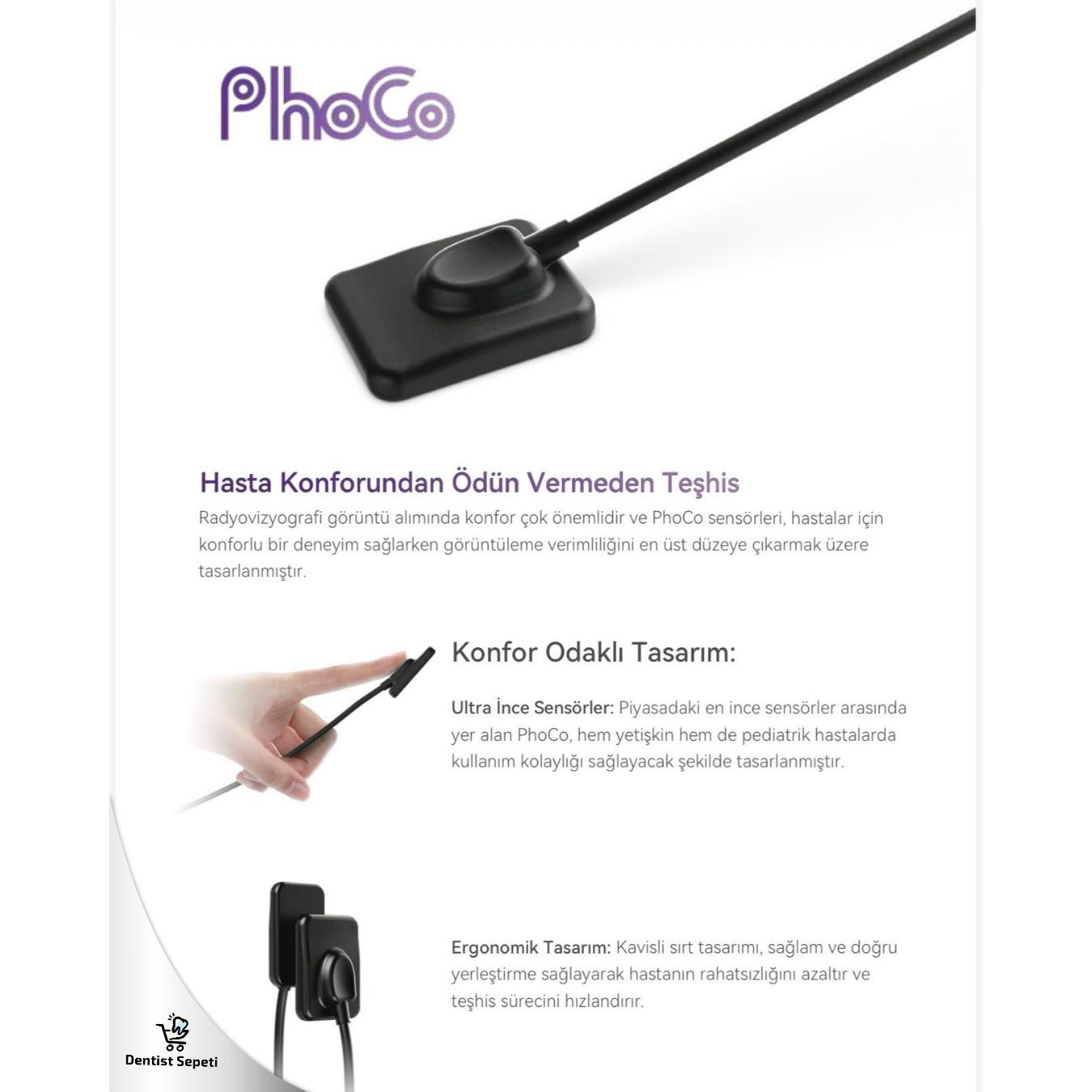 Piyatadaki en ince sensörler arasında yer alan Phoco, ergonomik ve ultra ince yapısı ile hem yetişkin hem de çocuk hastaların ağız içine kolayca yerleştirilebilir. Özel olarak geliştirilen kavisli sırt tasarımı, hatalı yerleştirmeleri önlerken hastanın duyduğu rahatsızlığı en aza indirir. Boyut 1.5 (PhoCo Pro) seçeneği (25 mm x 30 mm), tüm hasta tipleri için çok yönlü bir kullanım sunarak kliniğinizin ihtiyacını tek bir sensörle karşılamanızı sağlar.